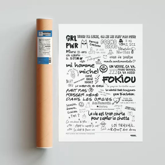 AFFICHE GRAFITIS DE TOILETTES - 50x70cm - LA MAJORETTE A MOUSTACHE