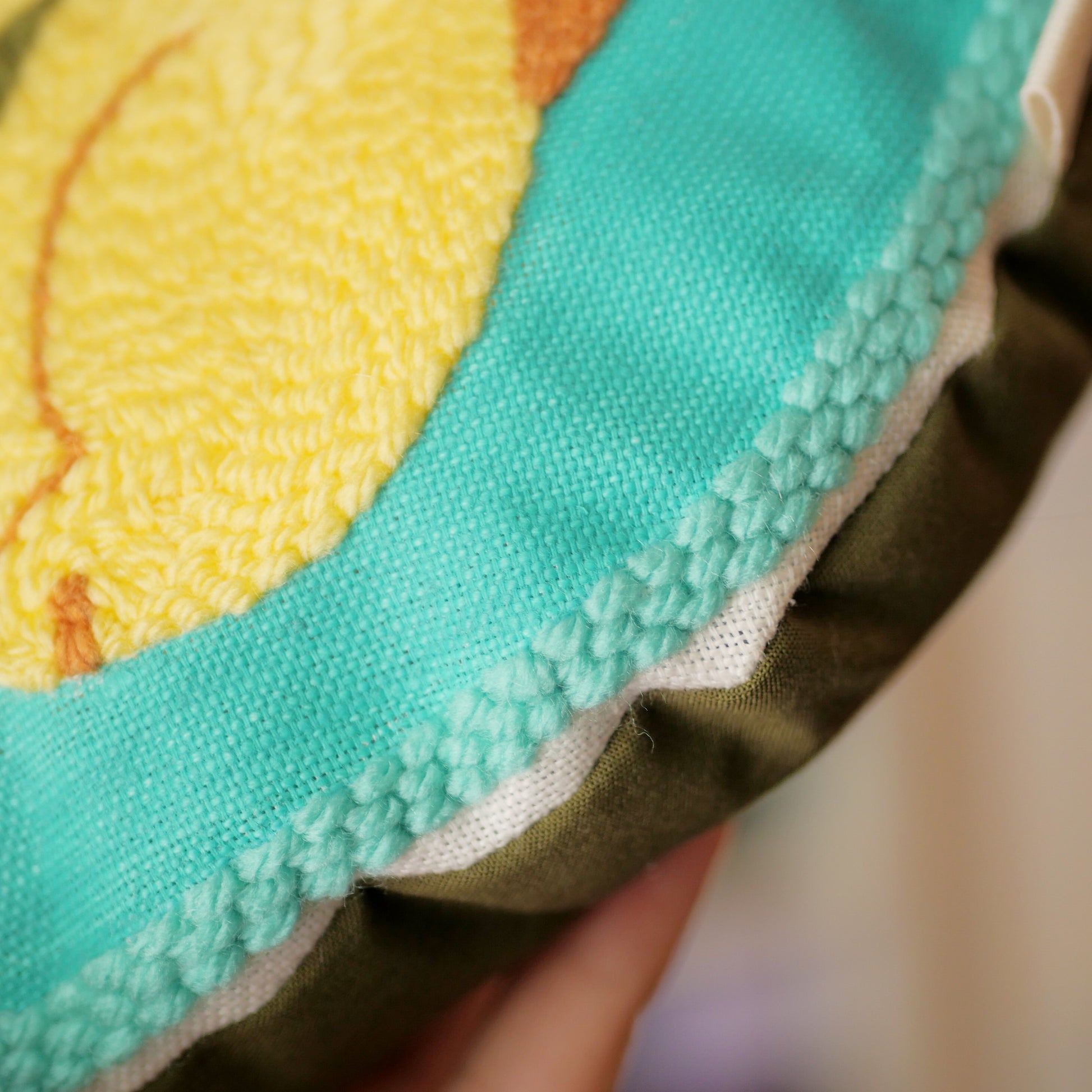 Mini coussin déco brodé à la main avec la technique punch needle.