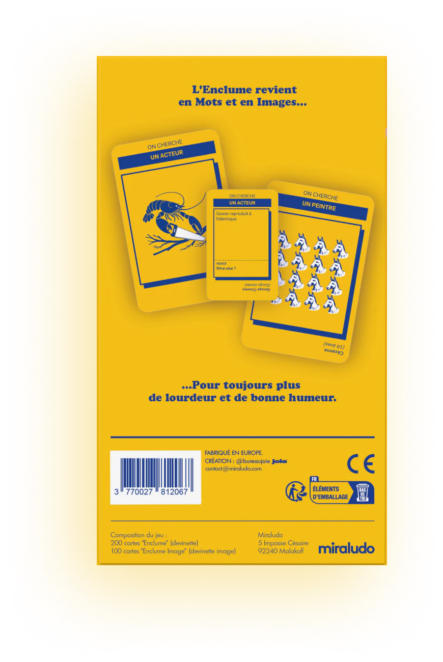 L'Enclume est le jeu de société que tous tes potes les plus lourds attendaient sans le savoir. Il est à la lourdeur ce que le Pictionnary est au dessin, ce que le Trivial Pursuit est à la culture générale.