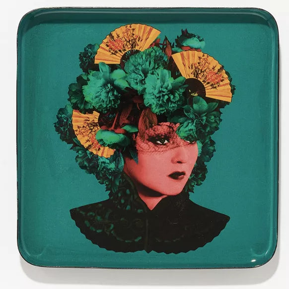 Plateau décoratif en métal entièrement fait à la main. Usage intérieur
